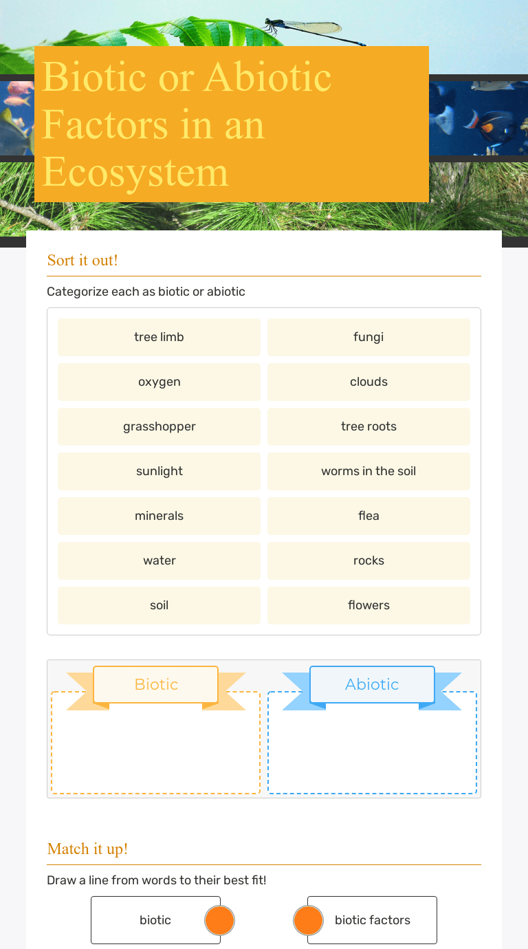 6Th Grade Biotic And Abiotic Factors Worksheet - 42 Elegant Collection Abiotic And Biotic Factors Coloring Page Answrs Worksheet Biotic Vs Abiotic Factors Editable Tpt Knowing This Give An Example Of What Might Happen Given The -. 1 work effectively within a cooperative group setting, accepting and executing assigned roles and responsibilities. I am using it to stress the interaction of biotic and abiotic factors. Abiotic factors include rocks, water, and sunlight. They consider biotic and abiotic factors in an ecosystem and the effects these factors have on a population. Suggested grades 6th grade 7th grade 8th grade.
